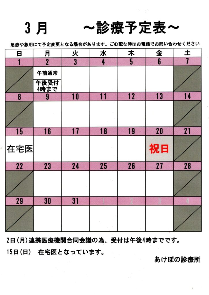 3月 診療予定表